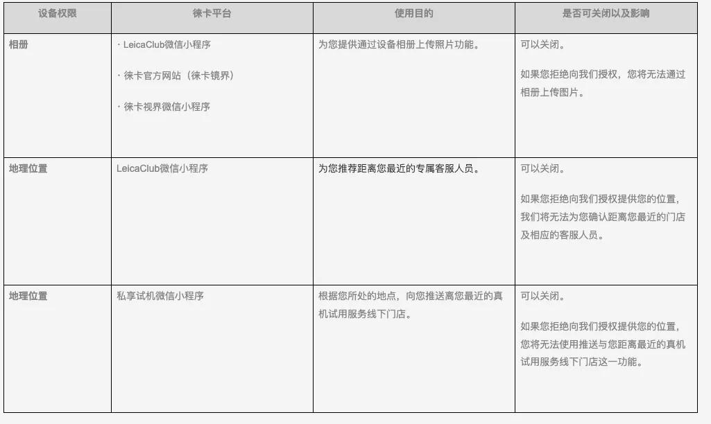 徕卡个人信息保护政策