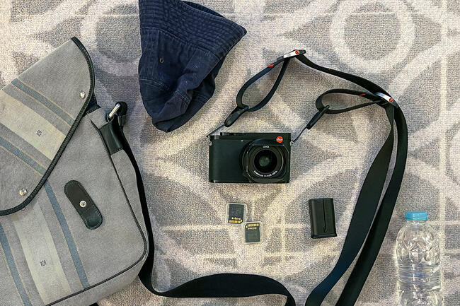 无论是出差还是游玩,短途旅行我总是轻简行囊。因为旅行时通常只有几个小时的拍摄时间,所以我只携带徕卡Q2相机、一块备用电池、几张SD内存卡、一顶太阳帽和一瓶水。