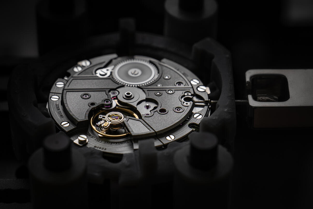 徕卡Calibre机芯由瑞士制造,是未来ZM 11系列腕表研发的基础。机芯的喷砂工艺夹板、斜面和侧面抛光打磨工艺无不体现着徕卡设计美学的精髓。深灰色电镀钌表面的夹板与元件更添几分独特的现代触感。